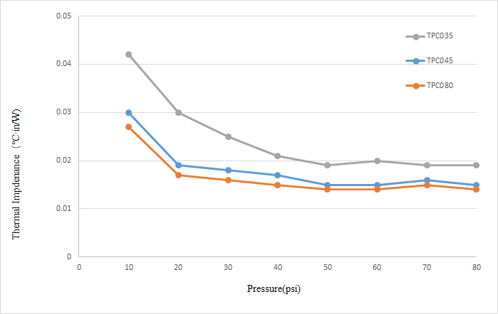 Thermal Resistance(@20psi) | ℃·in2/W | 0.056 | 0.039 | 0.006 | ASTM D5470 |