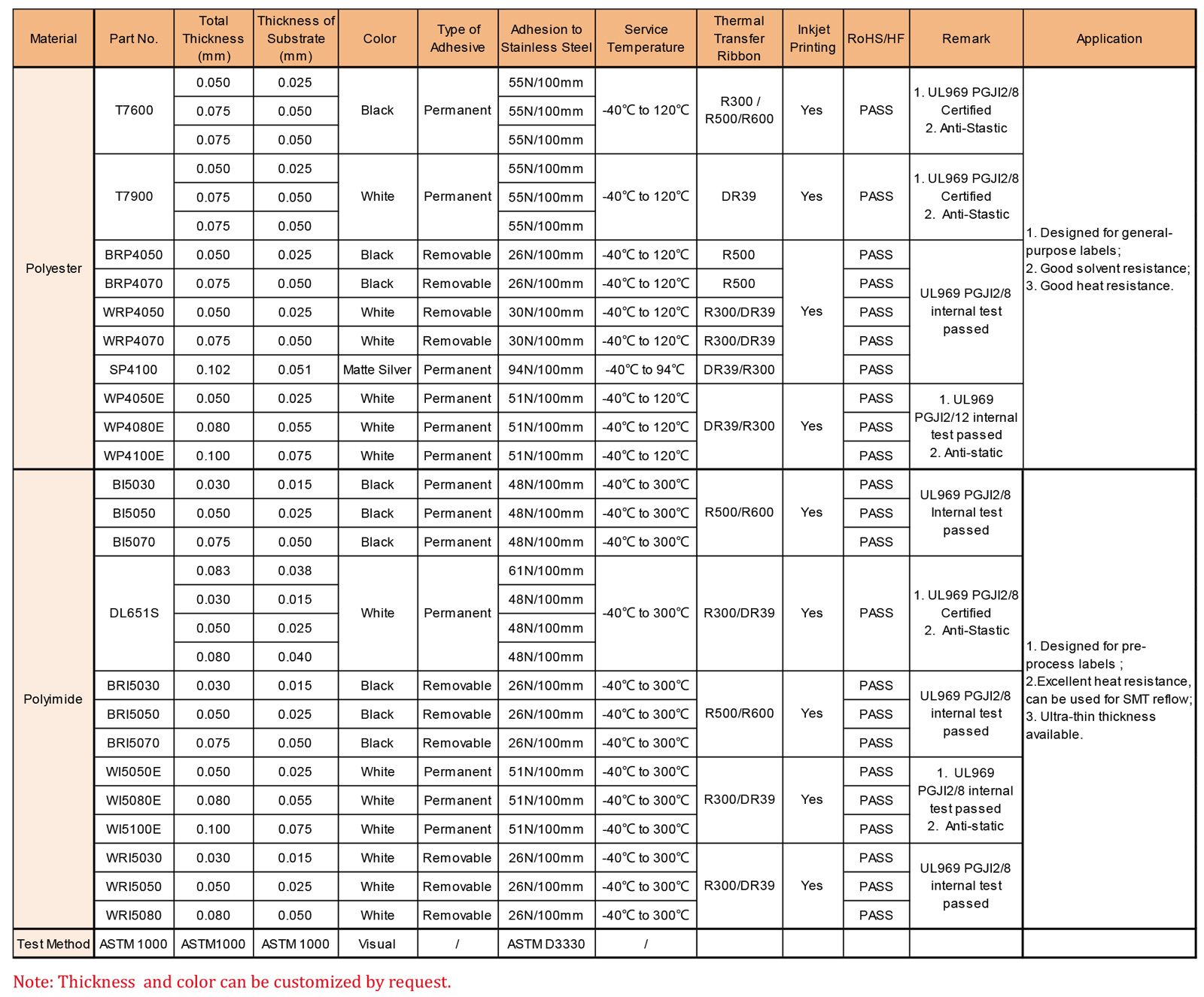 聚酯和聚酰亞胺標(biāo)簽